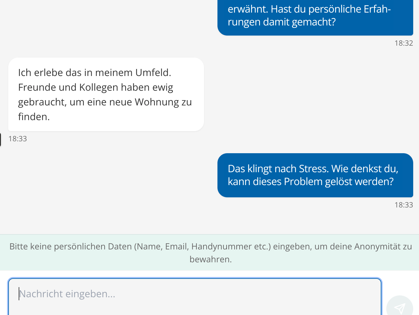 Individuell konzipierte Interviews im Chat-Format – mit offenen und geschlossenen Fragen. Der Interview-Agent stellt Rückfragen, wenn nötig, und passt sich flexibel dem Gesprächsverlauf an. Die Erhebung ist anonym und skalierbar.